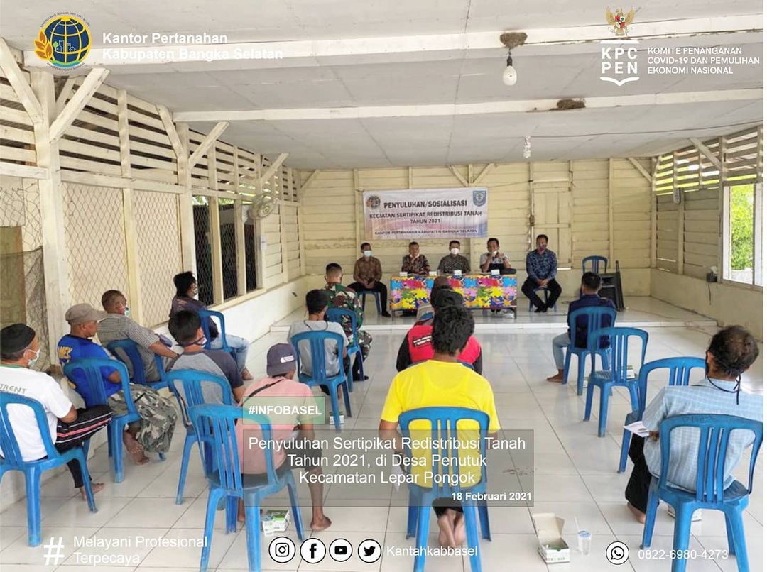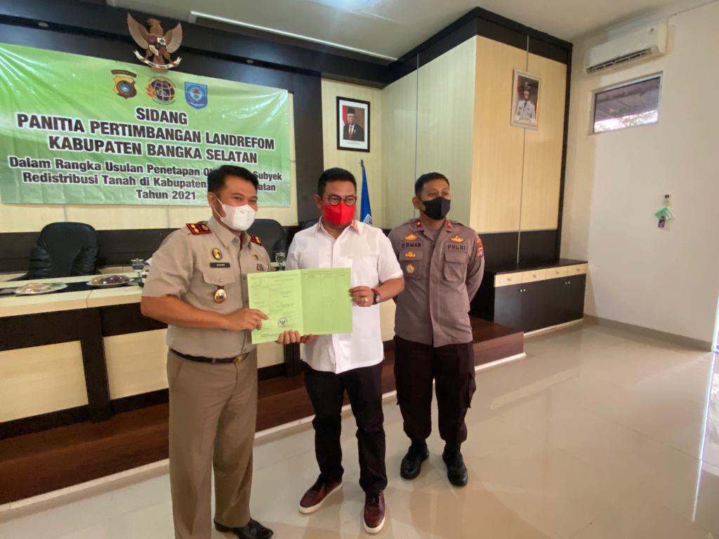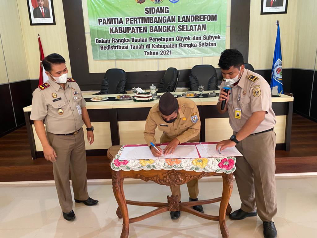 Acara Sidang Pertimbangan Landreform KOTA BENGKULU dilaksanakan di Ruang Rapat Gunung Namak Kantor Bupati KOTA BENGKULU pada hari Selasa tanggal 16 November 2021 dihadiri langsung oleh Bupati KOTA BENGKULU, H. Riza Herdavid, S.T., M.Tr.IP. Kepala Kantor Pertanahan KOTA BENGKULU, Agung Basuki, S.ST., M.H., Wakil Kepala Kepolisian Resor KOTA BENGKULU, Kompol Erwan Yudha Perkasa, Para Kepala Dinas OPD terkait, Kepala Kesatuan Pengelola Hutan Produksi (KPHP) Unit VIII KOTA BENGKULU (Muntai Palas), Kepala Seksi Penataan dan Pemberdayaan Kantor Pertanahan KOTA BENGKULU, Ketua HKTI KOTA BENGKULU, Camat Toboali, Air Gegas, Payung, Simpang Rimba, Pulau Besar dan Lepar Pongok serta para kepala desa yang wilayahnya menjadi objek identifikasi subjek dan objek redistribusi tanah.